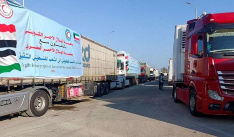 Dhjetë kamionë me ndihma kaluan procedurat e inspektimit në pikën kufitare Rafah, ndërsa u pritën nga Gjysmëhëna e Kuqe Palestineze në anën e Gazës.