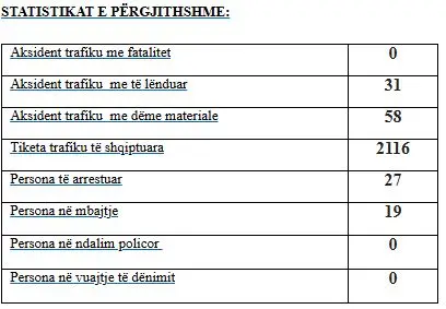 Gjatë kësaj periudhe, janë raportuar gjithsej 89 aksidente. Këto aksidente përfshijnë 31 raste me persona të lënduar, duke vënë në rrezik jetën e shumë qytetarëve të pafajshëm.