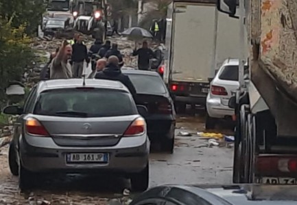 Raportohet se uji ka marrë me vete sasi të mëdha inertesh dhe ka bllokuar aksin për disa orë.