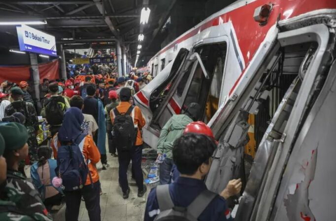 Ngjarja ndodhi pranë stacionit Bekasi Timur, rreth 25 kilometra në lindje të kryeqytetit, kur një tren udhëtarësh i ndalur u godit nga një tren i linjave të gjata. Sipas autoriteteve, të gjitha viktimat ndodheshin në bordin e trenit të goditur, ndërsa rreth 240 pasagjerë të trenit tjetër u evakuuan në mënyrë të sigurt.
