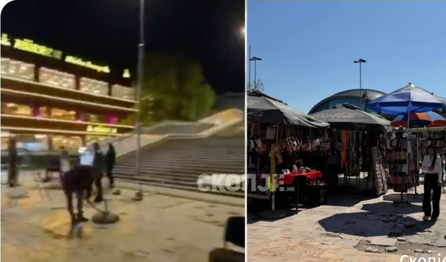 Objektet e përkohshme ilegale në hyrje të Çarshisë së Vjetër të Shkupit, ku shiteshin bizhuteri dhe magnete për turistë, janë larguar gjatë natës.