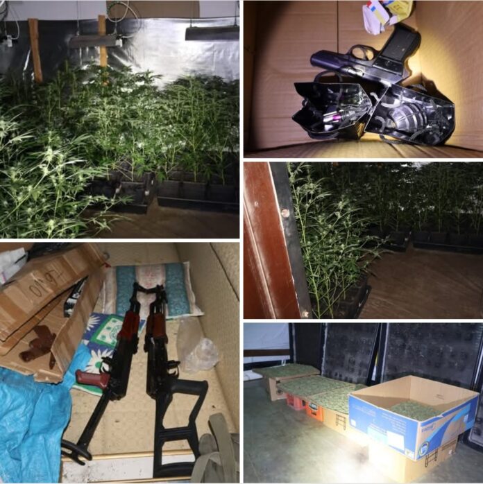Gjatë një kontrolli të kryer me urdhër gjykate në një ish-objekt hotelierik në fshatin Mešeishtë, komuna e Debërcës, që përdorej nga i dyshuari G.M., janë gjetur dhe sekuestruar gjithsej 1,357 copë fishekë të kalibrave të ndryshëm, 488 bimë kanabisi, një kuti me plumba kalibri 7.62 mm, dy revole të vjetra, një pistoletë “VZOR” kalibri 7.65 mm, dy pushkë automatike, një mbajtëse trombloni, një trup dhe një kapsulë ndezëse granate dore, si dhe pako me substancë të zezë ngjitur, qese me substancë pluhuri ngjyrë kafe dhe sende të tjera që i posedonte në mënyrë të paligjshme.