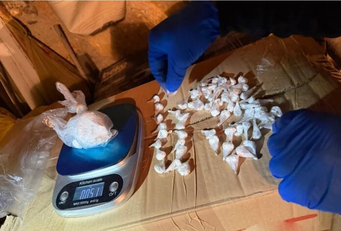 Pas informacioneve operative të marra paraprakisht, është vepruar sipas urdhrit për kontroll në shtëpinë e tij në zonën e komunës së Aerodromit, ku janë gjetur dy kavanoza me kokainë dhe një peshore digjitale, si dhe një pjesë e lëndës narkotike e paketuar në qese të vogla, e përgatitur për shitje me pakicë.
