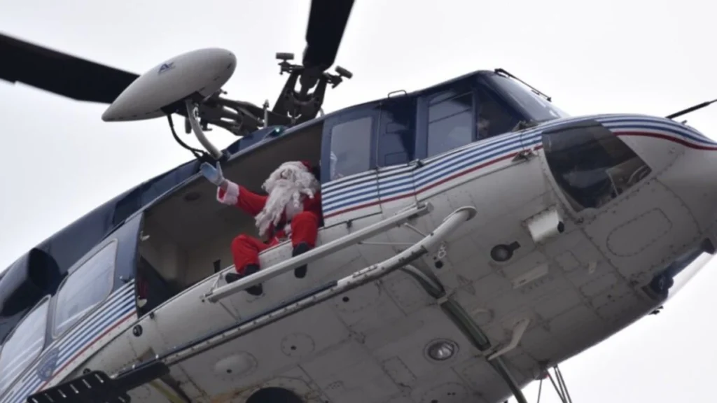 Babagjyshi dhe super-heronjtë e preferuar nga filmat vizatimorë zbritën me litar nga një helikopter dhe shpërndanë dhurata për fëmijët e shtruar në Klinikën Universitare për Sëmundjet e Fëmijëve.