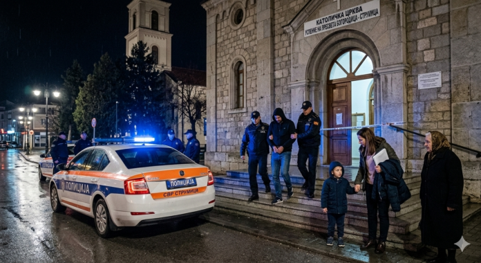 Më datë 17.03.2026, në ora 23:40 në Strumicë, zyrtarë policorë nga SPB Strumicë kanë privuar nga liria personin S.H. (26) nga Strumica. Ai është zënë në flagrancë duke kryer “vjedhje të rëndë” në kishën katolike “Fjetja e Hyjlindëses Mari”, me ç’rast ka vjedhur të holla.