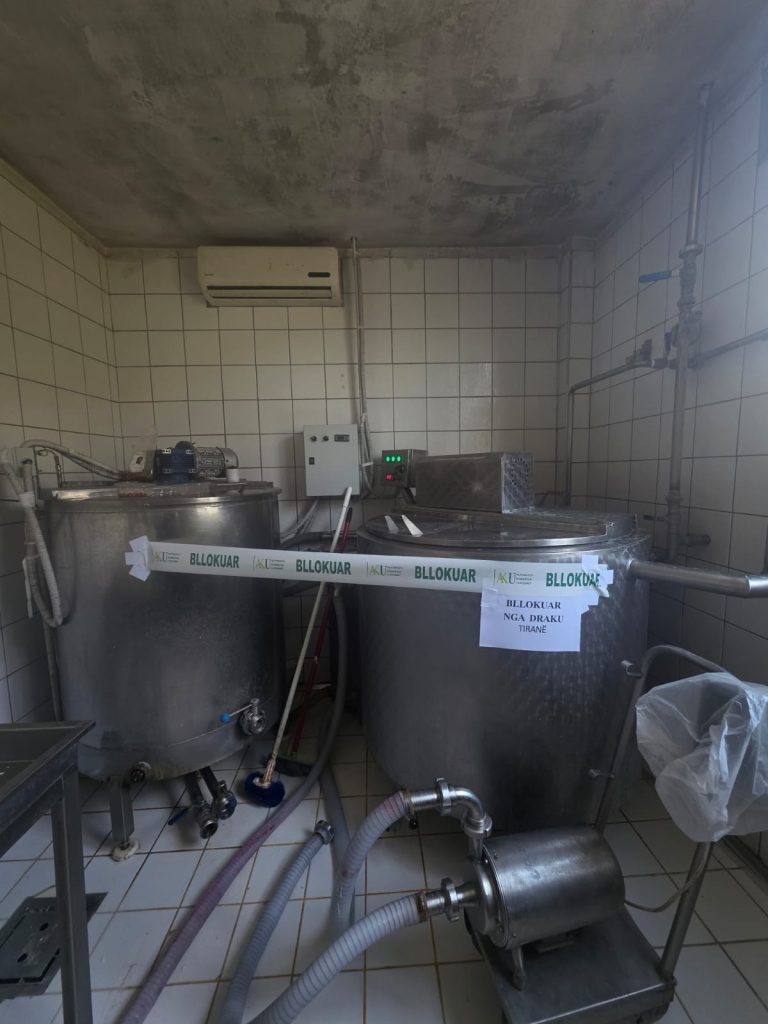 “Gjatë kontrollit zyrtar në subjektin “Bonum” (Baxho), trupa inspektuese konstatoi kushte higjieno-sanitare të papërshtatshme, si dhe prani të mykut, ndryshkut dhe lagështisë në ambientin e përpunimit. Për këto shkelje, u mor masa e menjëhershme e bllokimit të aktivitetit si dhe bllokimi i produktit të pasigurt: 328.7 (triqind e njëzet e tetë pikë shtatë) kg djathë i bardhë dhie. Ndaj subjektit u mor masa administrative “Gjobë” në vlerën e 300.000 (triqind mijë) lekë për ushtrim të aktivitetit në kundërshtim me kërkesat ligjore mbi kushtet e përgjithshme dhe të veçanta të higjienës së ushqimeve.“, thuhet në njoftim.