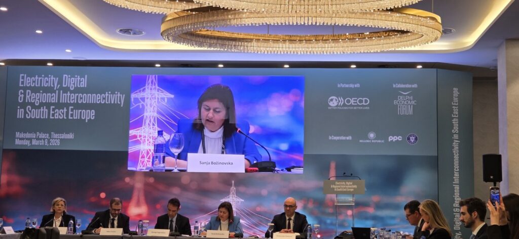 Ministrja e Energjisë, Minierave dhe Burimeve Minerale Sanja Bozhinovska mori pjesë dhe iu drejtua panelit ministror në ngjarjen e nivelit të lartë “Electricity, Digital and Regional Interconnektivity in South East Europe”, e cila u zhvillua në Selanik të Greqisë, ku zyrtarisht u lançua projekt e ri i OECD-së për promovimin e lidhjes elektroenergjetike, digjitalizimin dhe bashkëpunimin rajonal në Evropën Juglindore.