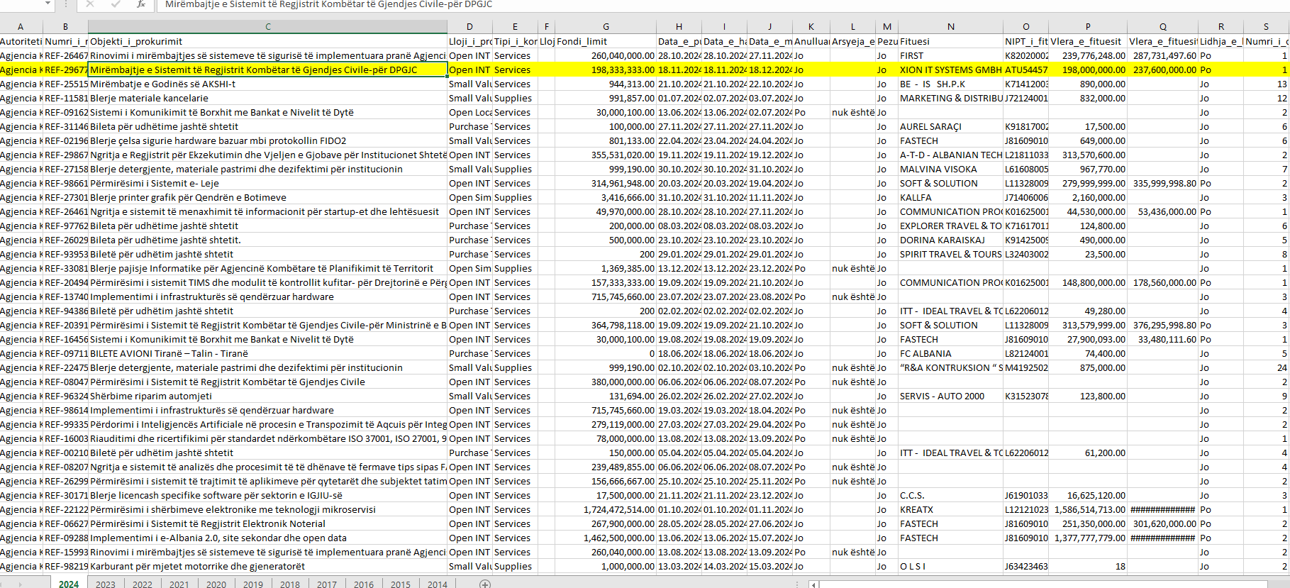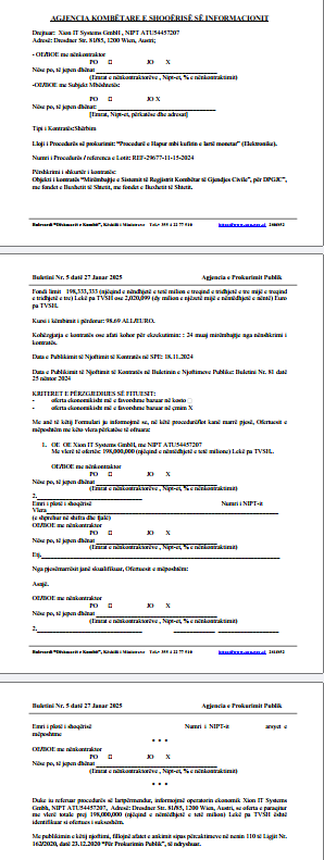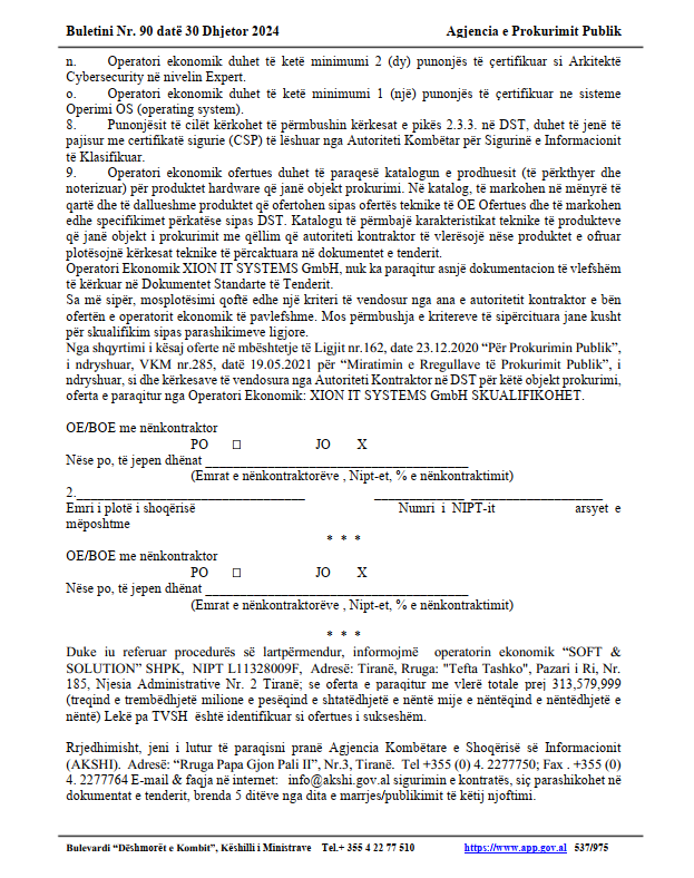Në Tetor 2024 shpallet fituesi SOFT & Solution shpk në pronësi të Ermal Beqiraj me vlerë të ofertës 3.1 mil euro.