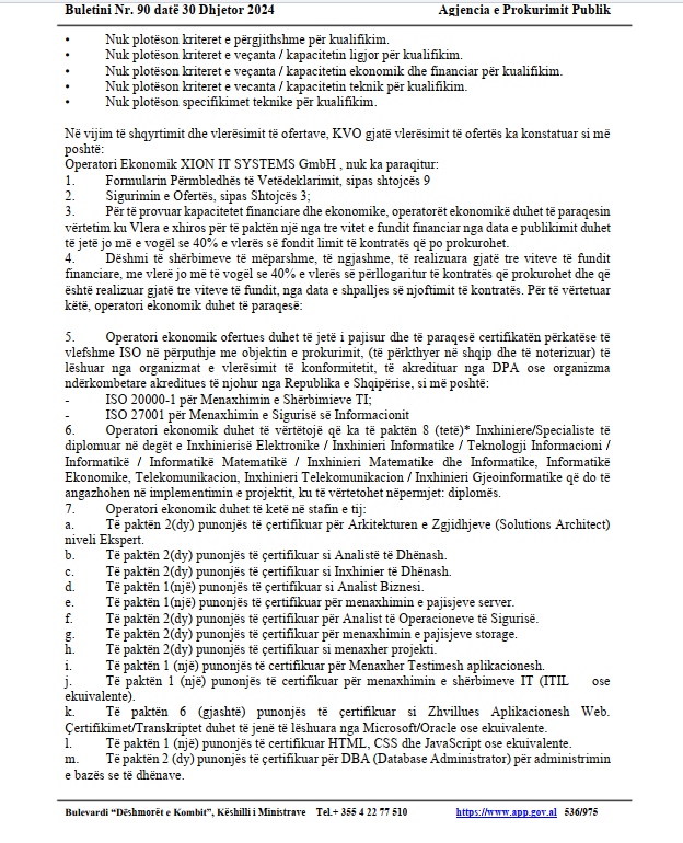 U skualifikuan 2 ndër to oferta më e ulët XION IT SYSTEMS GMBH me arsyetimin se nuk ka paraqitur asnjë dokumentacion të vlefshëm të kërkuar në DT.