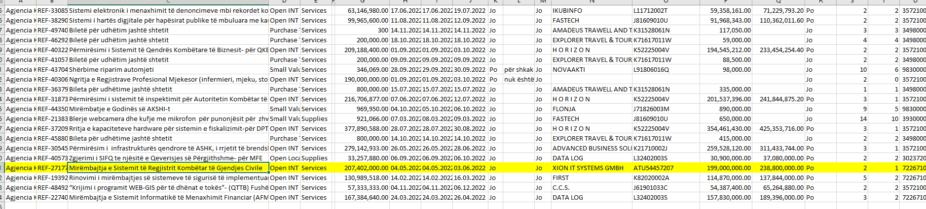 1 muaj më pas AKSHI shpall një procedurë tjetër mirëmbajtjeje për Regjistrin Kombëtar të Gjendjes Civile, konkretisht me objekt: ‘Mirëmbajtje e Sistemit të Regjistrit Kombëtar të Gjendjes Civile-për DPGJC’, fondi 1.9 mil euro dhe shpallet fitues ofertuesi i vetëm pjesëmarrës XION IT SYSTEMS GMBH me vlerë të ofertës 1.9 mil euro.