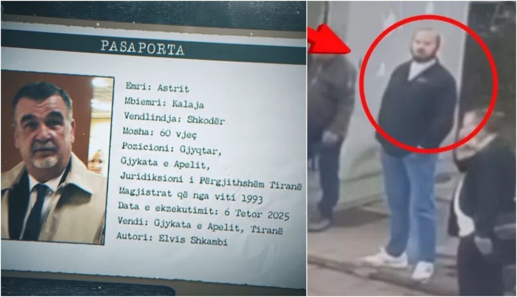 Gjyqtari Astrit Kalaja, me një përvojë prej disa dekadash në drejtësi, që u qëllua me tri plumba në gjoks. Vrasësi i gjyqtarit Kalaja që do të vetëprezantohej si Elvis Shkambi. 30-vjeçari që shikoni në këto pamje.