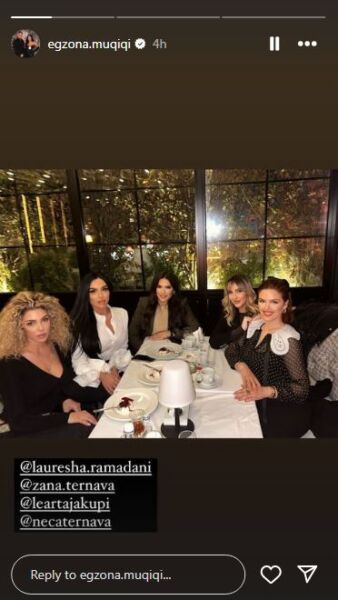 Në fotografinë e fundit ajo shihet se ka dalë në iftar me mikeshat e saj dhe të gjitha po duken tjeter bukur./ORAinfo/