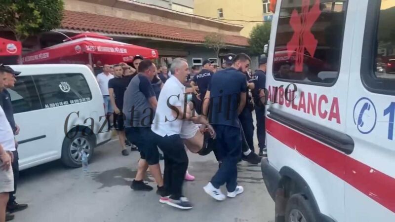 Nga fotoja duket se të pranishmit kanë tentuar të përmendin 42 vjeçarin me një shishe ujë, për t’i dhënë kështu ndihmën e shpejtë për shkak të plagëve.