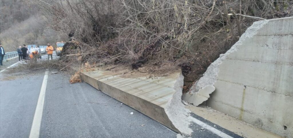 Sipas burimeve zyrtare, rrëshqitja e një masivi dheu ka dëmtuar murin pritës, dhe aktualisht lëvizja po kryhet me një korsi të vetme.