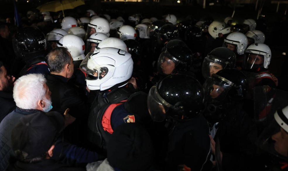 Policia ka hedhur gaz lotësjellës si para kryeministrise ashtu edhe para Parlamentit për të shpërndarë protestuesit.