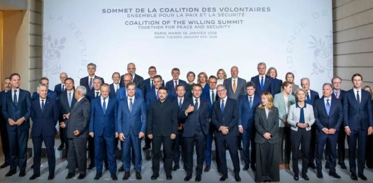 Ndërsa aleatët evropianë u mblodhën në Paris për të konsoliduar garancitë e sigurisë për Ukrainën, prania e emisarëve të paqes të Trumpit ofroi shpresë se BE mund të dëgjohej ende në Uashington, pavarësisht polemikës së ashpër mbi kërcënimet e Uashingtonit për të aneksuar Groenlandën. “Ne kemi finalizuar në masë të madhe protokollet e sigurisë,” tha Steve Witkoff, një nga dy emisarët, ndërsa qëndronte krah udhëheqësve të Francës, Gjermanisë, Britanisë së Madhe dhe Ukrainës në pallatin presidencial francez në Paris.