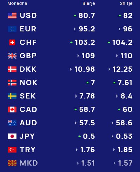 Ndërsa paundi britanik do blihet me 109 lekë dhe do shitet me 110 lekë.