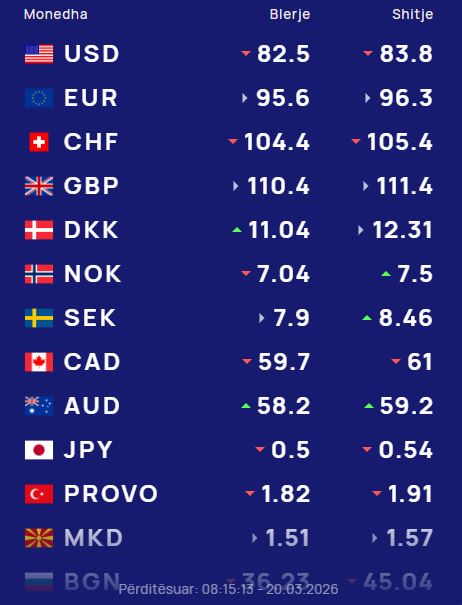 Ndërsa paundi britanik do blihet me 110.4 lekë dhe do shitet me 111.4 lekë.