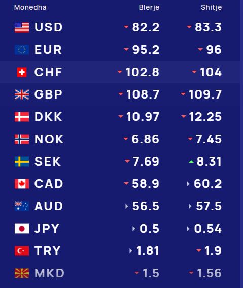 Ndërsa paundi britanik do blihet me 108.7 lekë dhe do shitet me 109.7 lekë.