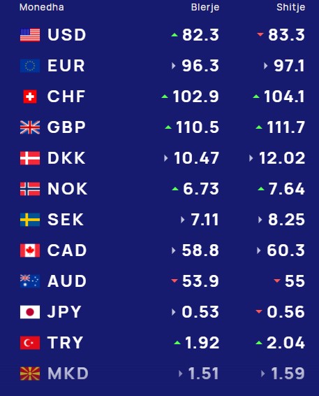 Ndërsa paundi britanik do blihet me 110.5 lekë dhe do shitet me 111.7 lekë.