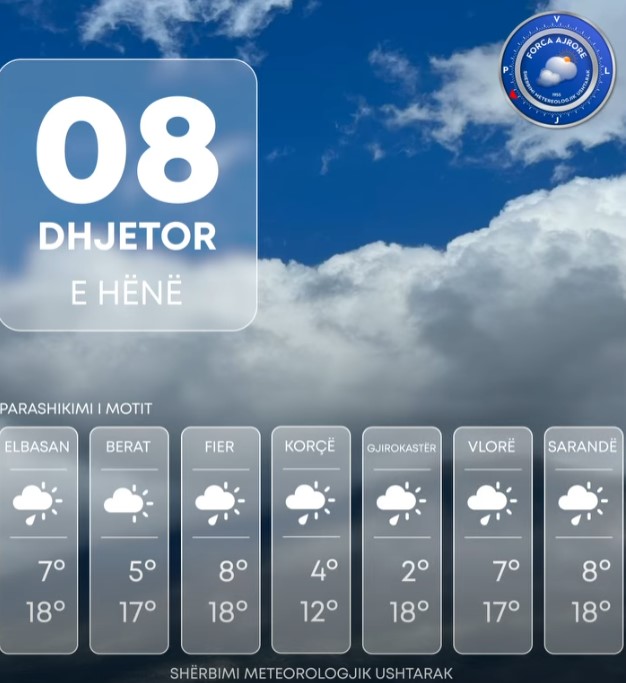 Ditën e sotme vendi ynë do të ndikohet nga kushte atmosferike relativisht të paqëndrueshme.