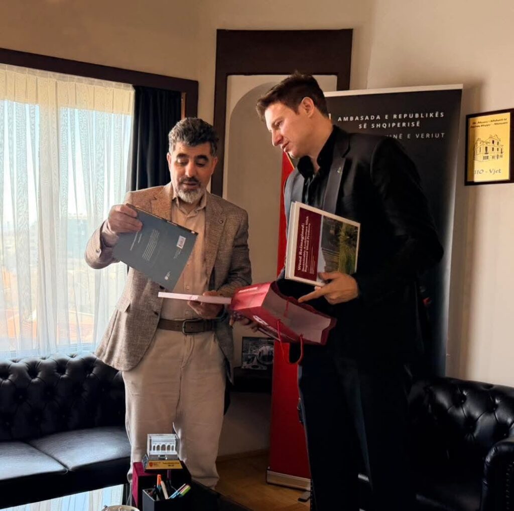 Ambasadori Meidani falënderoi rektorin Sunar edhe për librat e dhuruar, duke e cilësuar dhuratën si një vlerë dhe frymëzim për të vijuar përpjekjet në ngritjen e cilësisë në arsim.