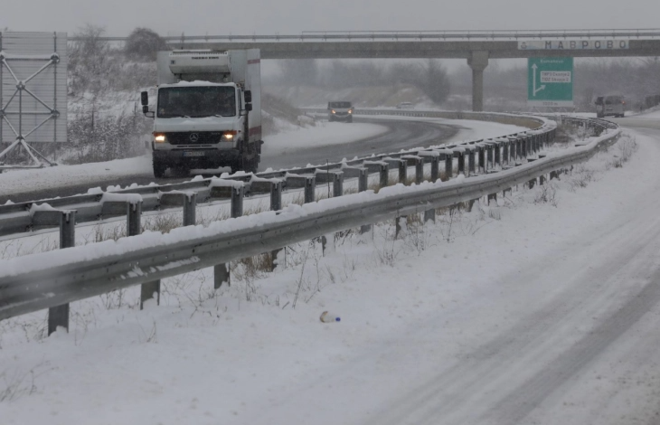 Për shkak të reshjeve të borës në rrugën Gostivar-Kërçovë nëpërmjet qafës malore Strazhë, nga ora 07:45 është vendosur ndalesë trafiku për automjete të rënda (kamionë). Gjithashtu, ndalim ka për kamionë në qafën malore Preseka, seksionin Mavrovë-Dibër dhe pikën kufitare Strugë-Qafë Thanë, njoftuan nga Ndërmarrja Publike Makedonijapat dhe LAMM.
