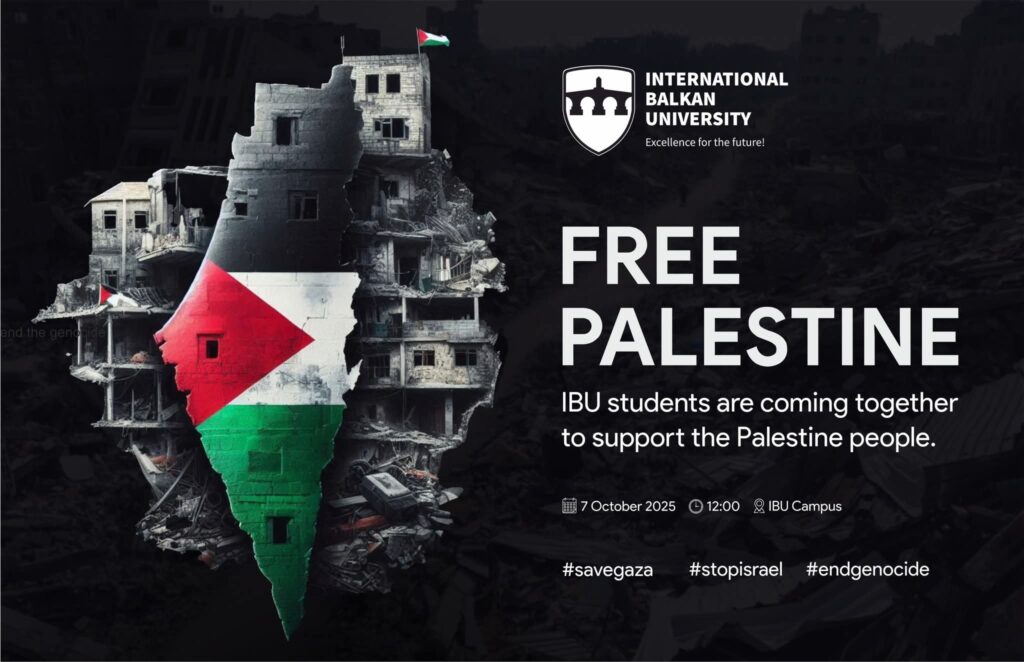 Më 7 tetor 2025, në ora 12:00, në kampusin e Universitetit Ndërkombëtar Ballkanik (IBU) do të mbahet një ngjarje solidariteti me moton “Free Palestine” (Palestina e Lirë), ku studentët e IBU-së do të bashkohen për të shprehur mbështetjen e tyre për popullin palestinez.