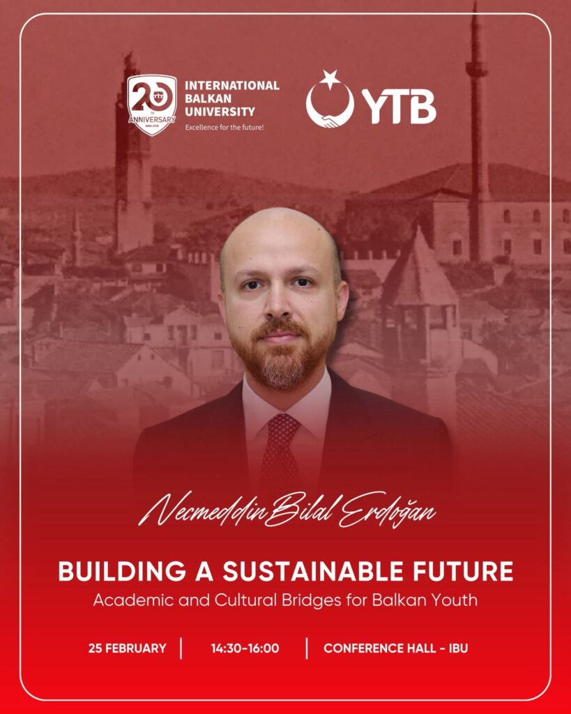 Universiteti Ndërkombëtar Ballkanik do të mirëpresë z. Necmeddin Bilal Erdoğan, Kryetar i Bordit të Besimtarëve të ilim Yayma Vakfı, në një program të veçantë që do të mbahet më 25 shkurt 2026.