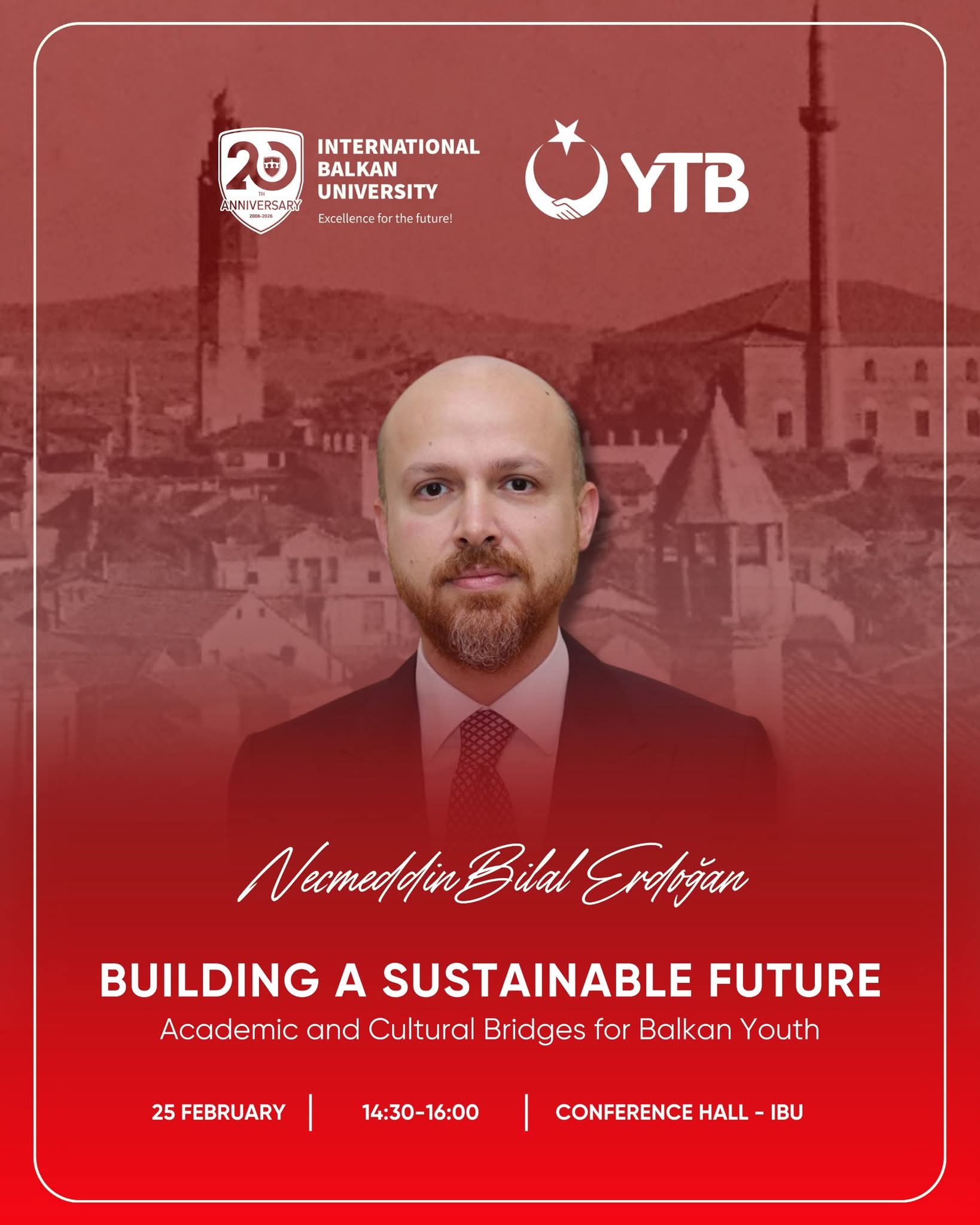 Ligjërata do të moderohet nga Rektori i IBU-së Prof. Dr. Lütfi Sunar dhe do të zhvillohet nen titullin “Ndërtimi i një të ardhmeje të qëndrueshme: Ura akademike dhe kulturore për rininë e Ballkanit”