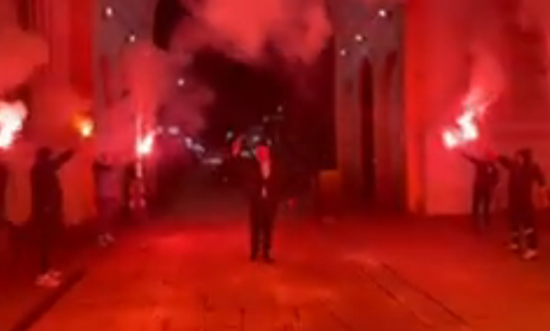 Duke brohoritur “Orce, Orce” dhe “VMRO-DPMNE”, kandidati për kryetar të Qytetit të Shkupit nga partia VMRO-DPMNE, Orce Gjorievski, dhe simpatizantët e tij, hynë simbolikisht në Portën e Triumfit, duke shpallë kështu fitoren në kryeqytet.