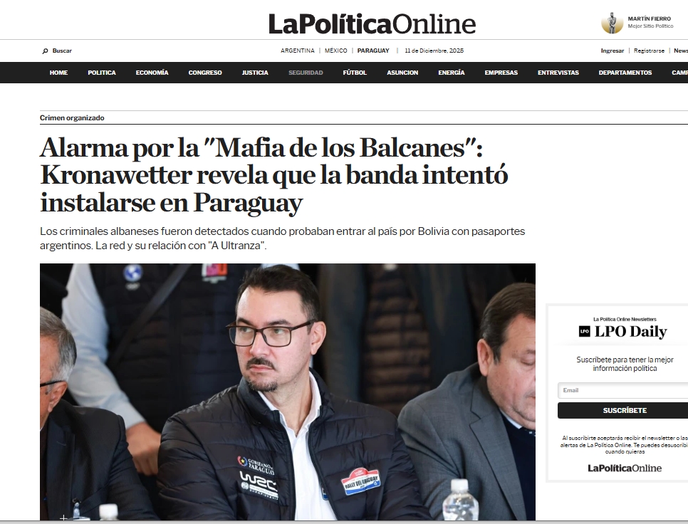 Drejtori i Migracionit të Paraguait, Jorge Kronawetter zbuloi se si anëtarë të së ashtuquajturës “Mafia Ballkanike” kishin përdorur dokumente të qytetarëve argjentinas për të shmangur kontrollet dhe për të hyrë në vend pa probleme. Mediat vendase citojnë fjalën e tij, i cili tha se anëtarët ishin zbuluar në pikat e kontrollit të vendosura në kufirin me Bolivinë. Sipas tij, një individ i kërkuar në Brazil, që i përkiste kësaj mafie, ishte identifikuar duke u përpjekur që të hynte në Bolivi duke përdorur një pasaporë bullgare. Këtij individ Ky individ u deportua dhe iu dorëzua autoriteteve braziliane.