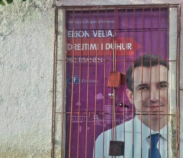 Ndërsa Bardhi ka postuar dy foto, në njërën është foto e PS-së në Cërrik që jepet me qira, ndërsa në tjetrën, një foto prej një dege të PS-së në Tiranë me posterin e Erion Veliajt, por dera e dyqanit është pas hekurave, duke dhënë edhe përshtypjen e Veliajt të burgosur.