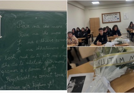 Me lot në sy, shokët e klasës bashkë me mësuesit i dedikuan disa rreshta 15-vjeçarit.