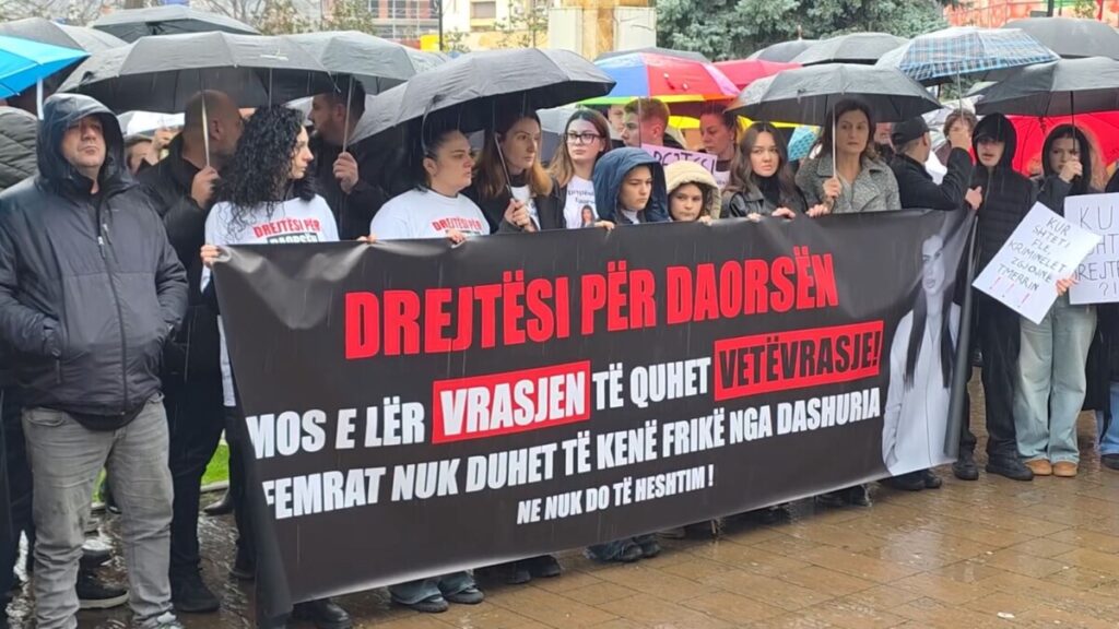 Këtë mesditë në Gjakovë u mbajt protestë, ku u kërkua drejtësi për Daorsa Spahija, studenten 25-vjeçare që vdiq tragjikisht në Tetovë më 6 nëntor. Me mbishkrimin “Drejtësi për Daorsën – Femrat nuk duhet të kenë frikë nga dashuria”, protestuesit kërkuan hetim të plotë, transparencë dhe marrjen e përgjegjësive institucionale për zbardhjen e rastit tragjik, përcjell TV21. U theksua se rasti I Daorsës nuk duhet të mbetet një statistikë tjetër, por një pike kthese në trajtimin e rasteve të dhunës dhe krimeve që prekin të rinjtë.