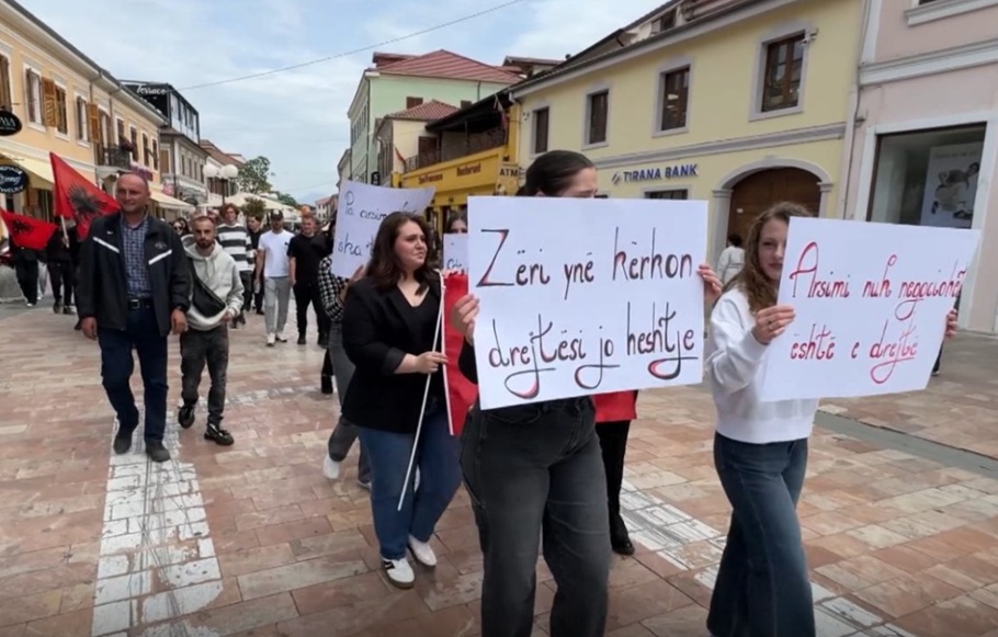 Me flamuj kuqezi dhe pankarta për të drejtën e barabartë në arsimim, studentë të Universitetit “Luigj Gurakuqi”, marshuan në Shkodër.