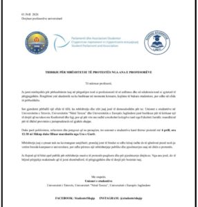 Unionet e studentëve nga Universiteti i Tetovës, Universiteti “Nënë Tereza” dhe Universiteti i Evropës Juglindore kanë dalë me një thirrje publike drejtuar profesorëve universitarë, duke kërkuar mbështetje për protestën në Shkup e paralajmëruar më 6 prill, në ora 12:30.