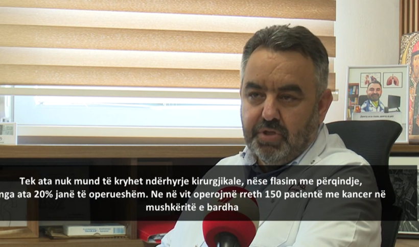 Numri më i madhë i tyre janë në fazë të avancuar që nënkupton se janë në gjendje të paoperushme. Tek ata nuk mund të kryhet ndërhyrje kirurgjikale, nëse flasim me përqindje, nga ata 20% janë të operueshëm. Ne në vit operojmë rreth 150 pacientë me kancer në mushkëritë e bardha. E rëndësishme është që për çdo vit numri është në rritje dhe ne jemi duke u përballur me numër të madhë të pacientëve, sikurse ne edhe klinika pulmologjike.
