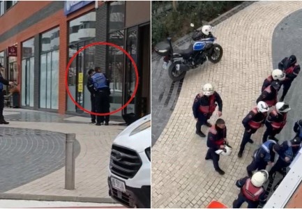 Siç shihet edhe nga pamjet, njëri prej efektivëve është duke e prangosur, ndërsa një tjetër, pak metra më tutje, me armë në dorë e ruan për të mos u larguar.