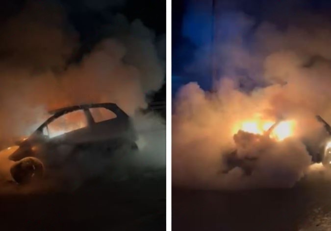 Një automjet është përfshirë nga flakët në orët e para të mëngjesit në fshatin Ravonik, në Korçë.