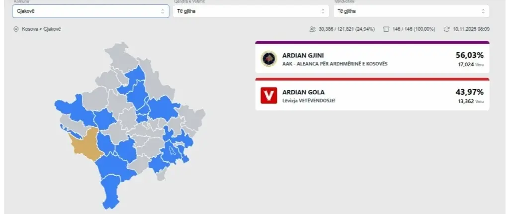 Kjo tregon se, pavarësisht sfidave, LDK-ja ka arritur të mbajë një bazë të fortë mbështetjeje në disa nga komunat më të rëndësishme të vendit.
